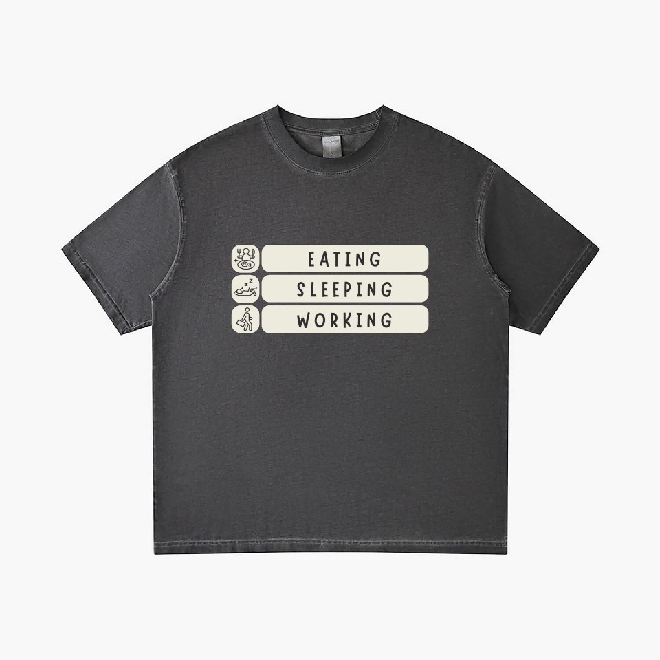 The item hot trend you're looking at is Eat Sleep Work Repeat - Funny Daily Routine Meme Gradient T Shirts For Men Washed Black belong theme Gradient T-Shirts at Printblur
