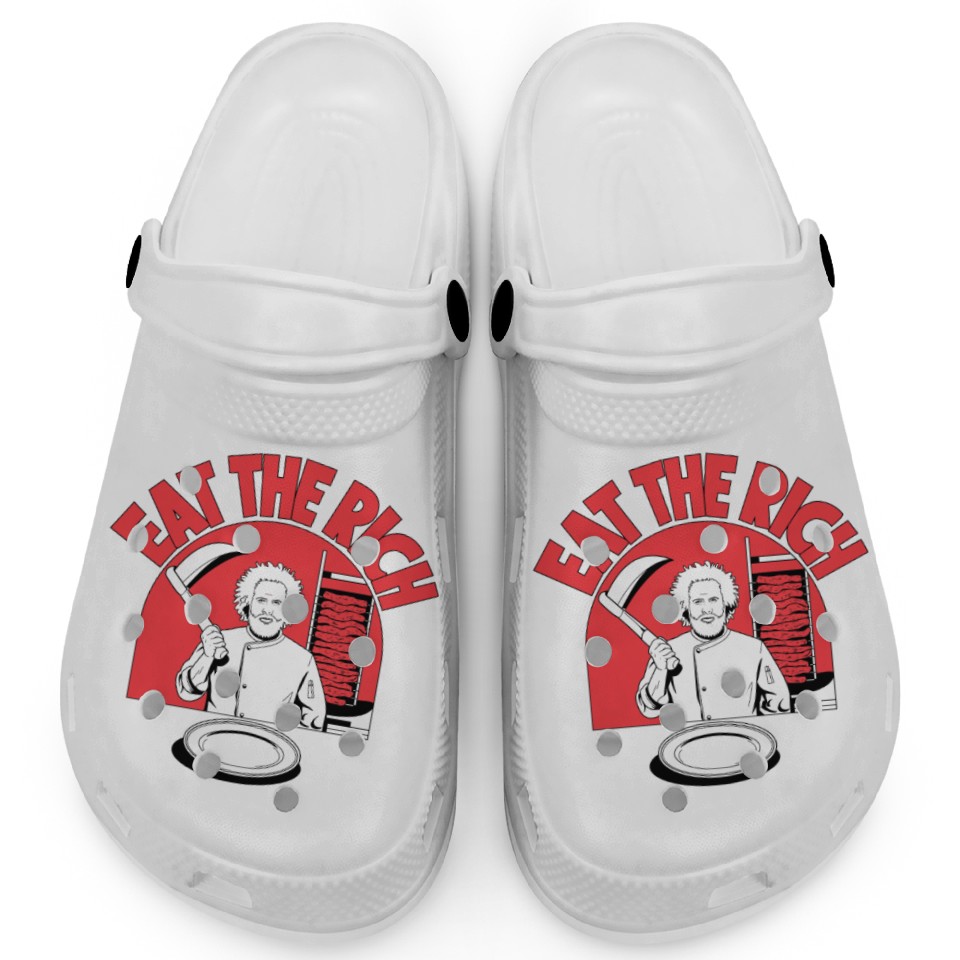 Buy eye-catching Eat The Rich Doner Döner Kebab Clogs or see more Clogs products at Printblur shop now to explore many surprises from our shop!