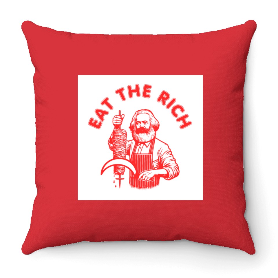 The product unique design you searched for is Eat the rich Karl Marx Eat Doner Kebab Rich Throw Pillows For Cover Only Red belong theme Throw Pillows at Printblur