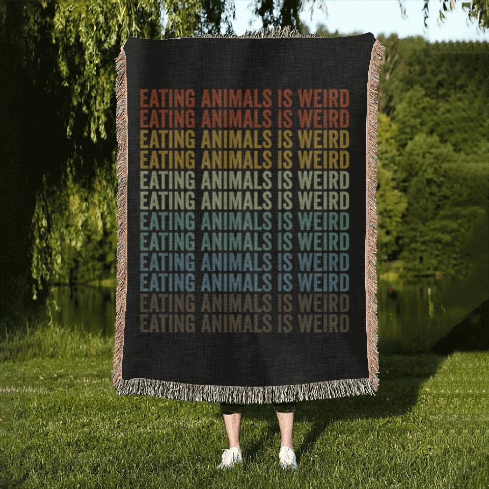 The product unique design you searched for is Eating Animals Is Weird Vegan Vegetable Lover Woven Blankets For Black belong theme Woven Blankets at Printblur