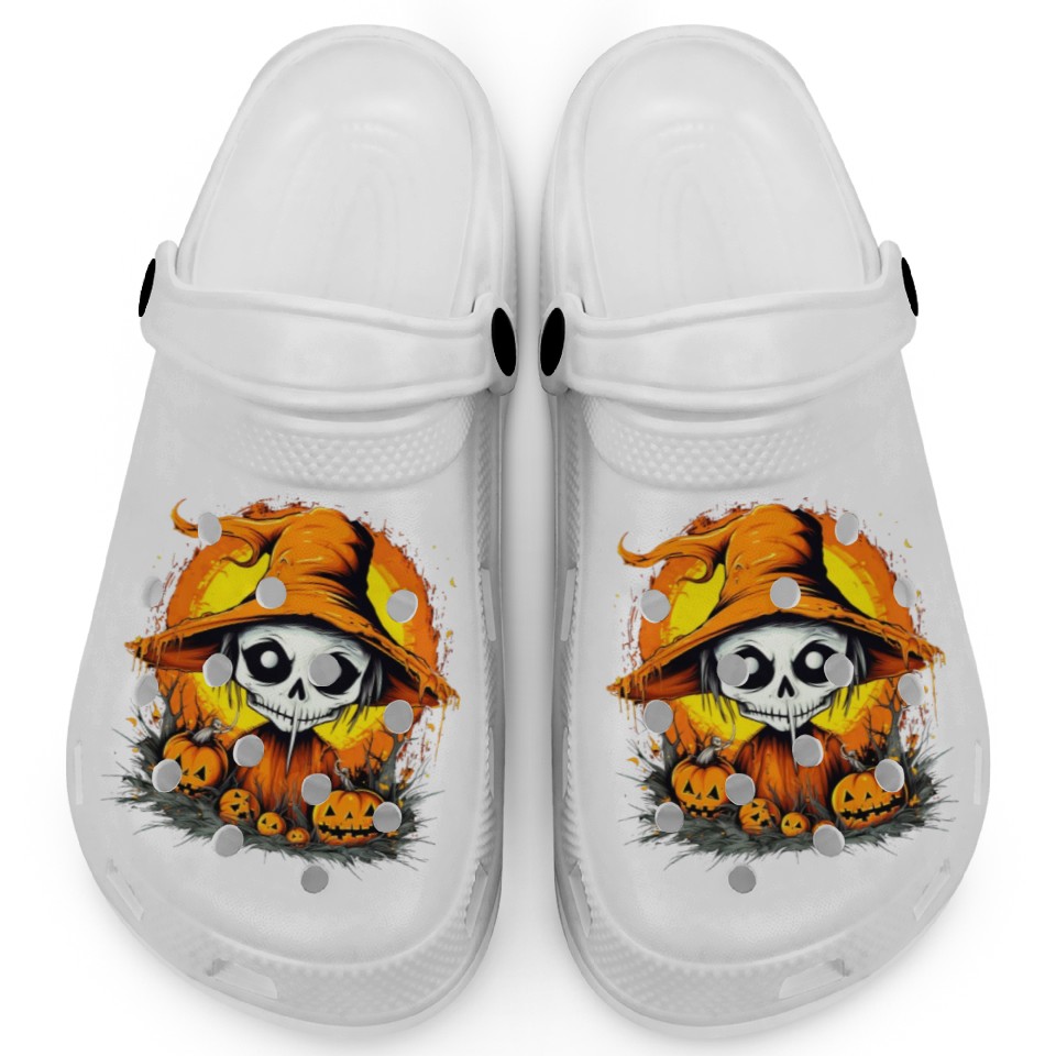 You are shopping for a stunning and trendy product Eerie Halloween Ghoul, Spooky Season Delight 17 Clogs For Kids WHITE belong theme Clogs at Printblur