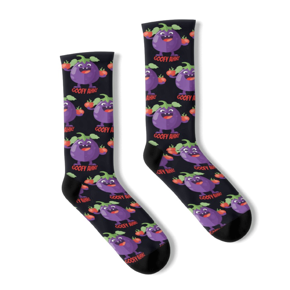 You're looking at the eye-catching product Eggplant Tomato Party Goofy Ahh Socks For Black belong theme Socks at Printblur