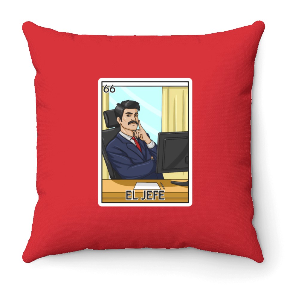 You are viewing an exclusive and elegant product El Jefe The Boss Card Mecan Lottery The Chief Throw Pillows For Cover Only Red belong theme Throw Pillows at Printblur