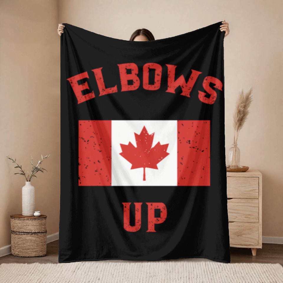 You are viewing one of the trendiest products Elbows Up Canada Vintage Anti Trump Tarriff Slogan Throw Blankets For Black belong theme Throw Blankets at Printblur