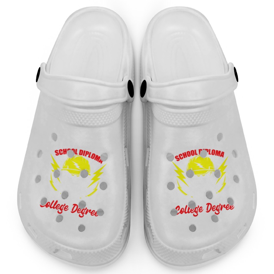 You are shopping for a stunning and trendy product Electrician Using A High School Diploma To Fix Clogs For Kids WHITE belong theme Clogs at Printblur