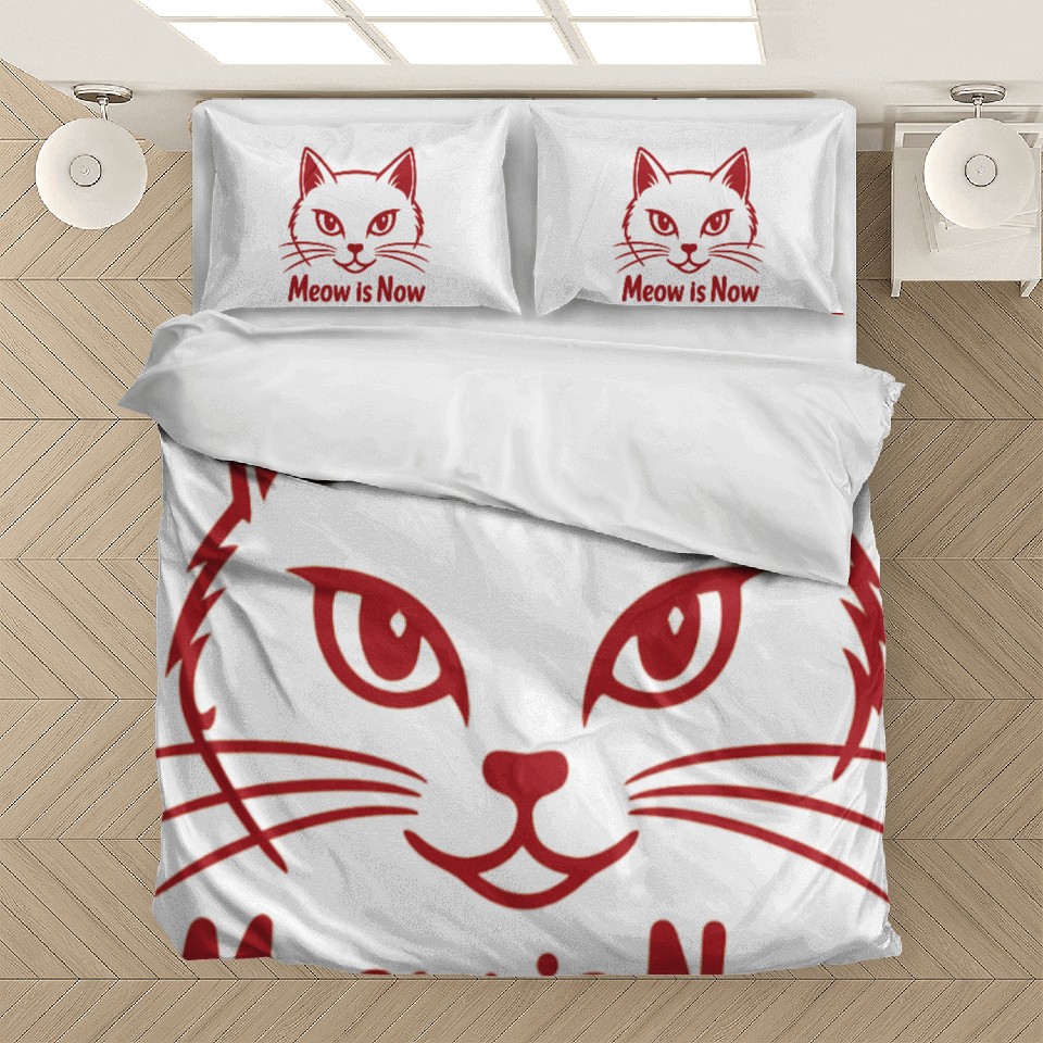 The product unique design you searched for is Elegant Cat Face with Bold Red Lines - Meow Is Now Bedding Sets For WHITE belong theme Bedding Sets at Printblur