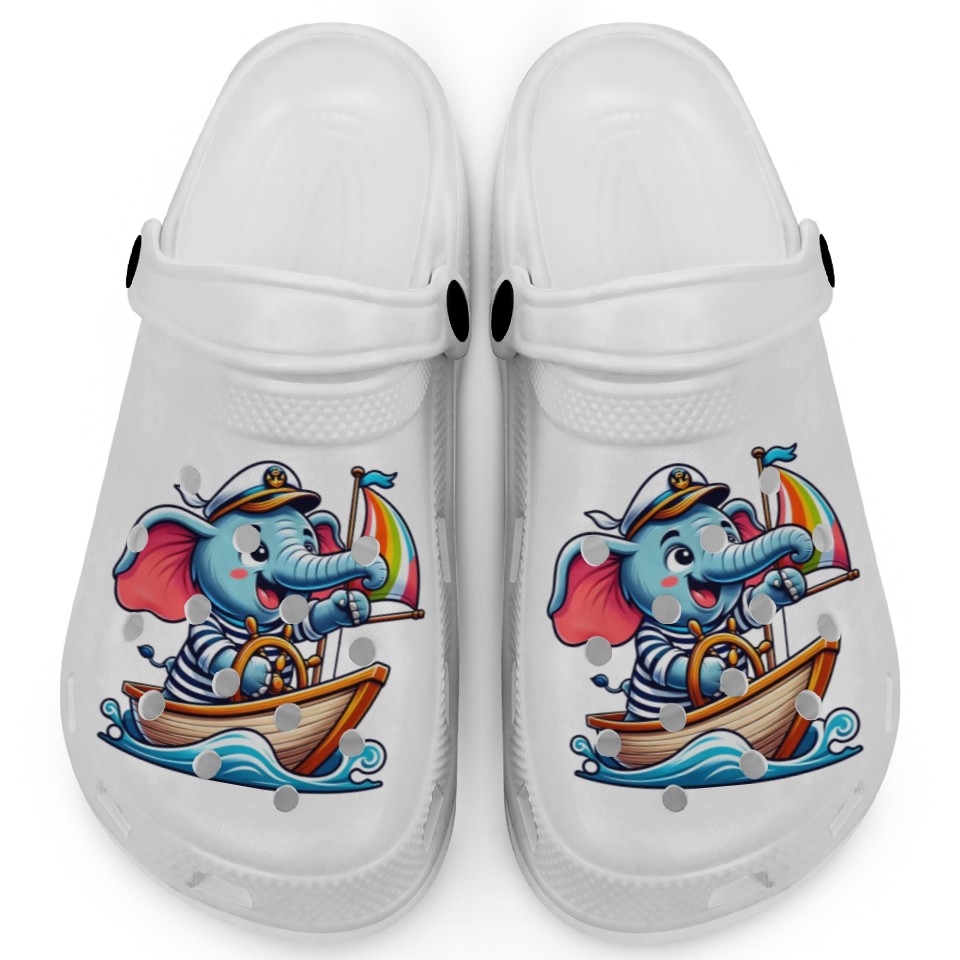 You're taking a peek at the product Elephant Sailor Sailing Boat Success Clogs For Kids WHITE belong theme Clogs at Printblur