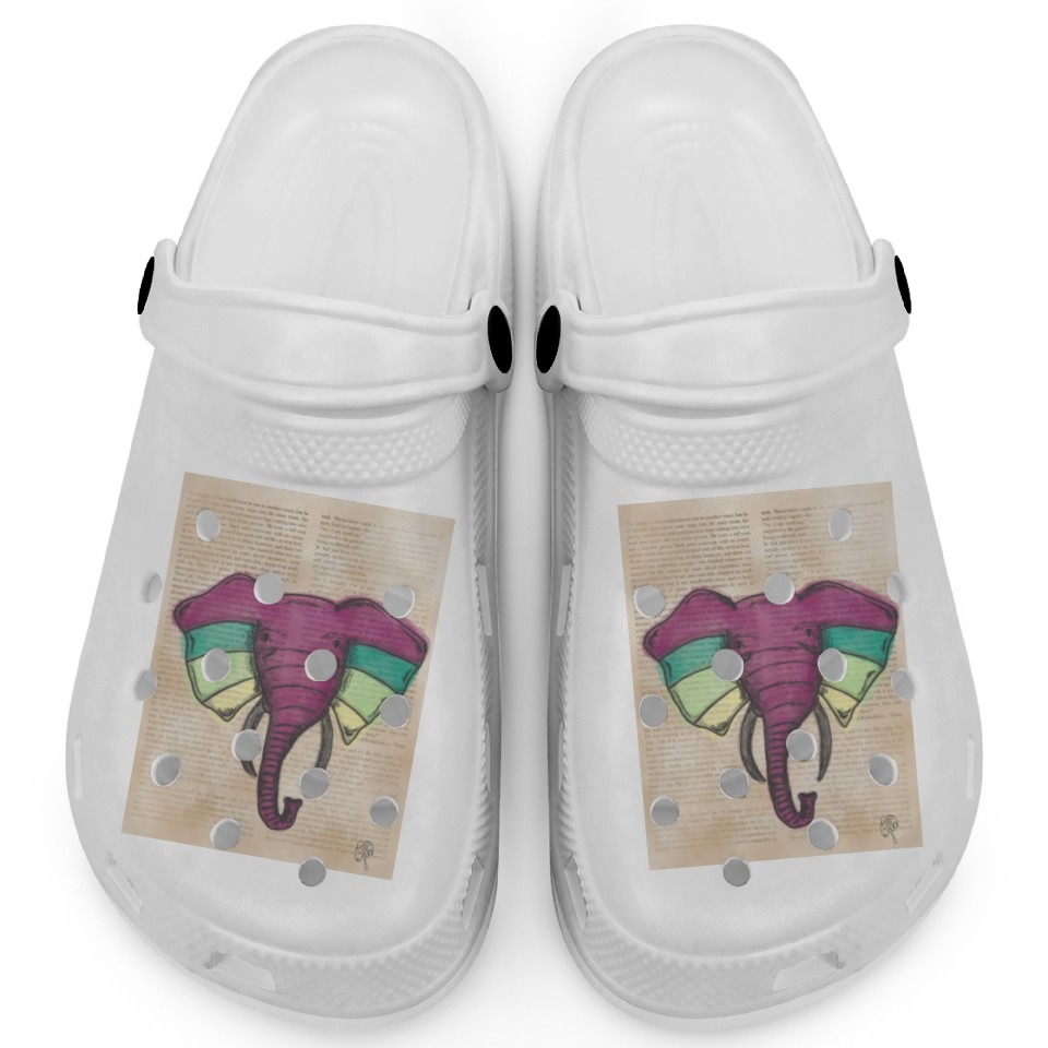 Elephant Water Color Face Clogs
