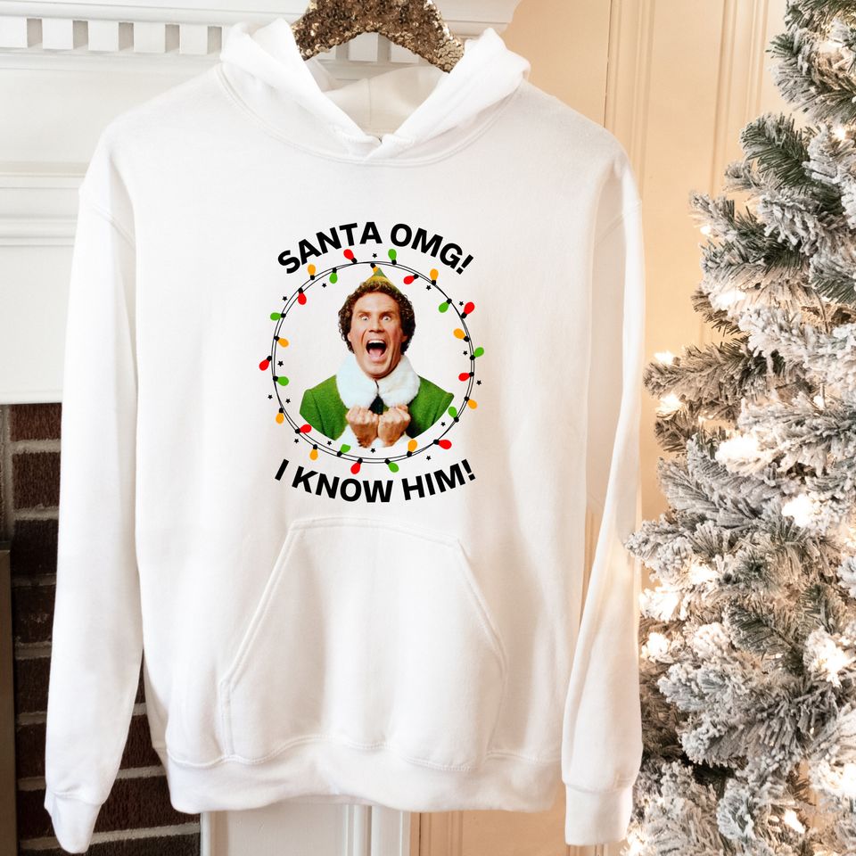 Buy stunning Elf Christmas OMG Santa I Know Him Hoodie, Christmas Movie Hoodie, OMG Santa Sweatshirt, Funny Christmas Sweatshirt, Christmas Hoodie or see more Hoodies products at Printblur right now to receive many amazing discounts!