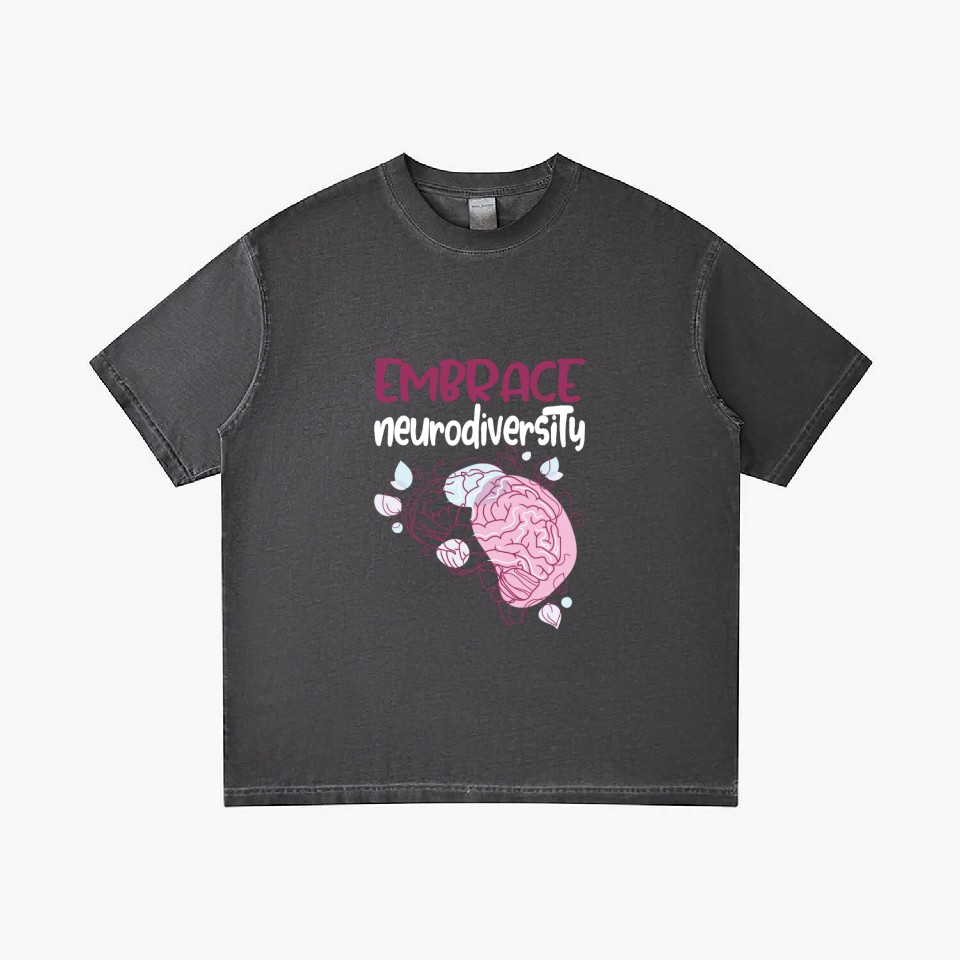 You are seeing a unique and impressive product embrace neurodiversity - Embrace ADHD Autism ASD. Gradient T Shirts For Men Washed Black belong theme Gradient T-Shirts at Printblur