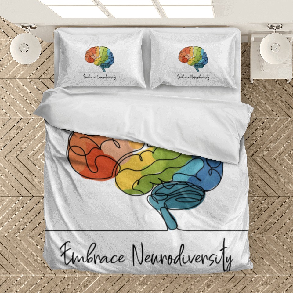 Shop for impressive Embrace Neurodiversity - Line Art Rainbow Brain Bedding Sets or see more Bedding Sets products right now on Printblur to enjoy your happiness!