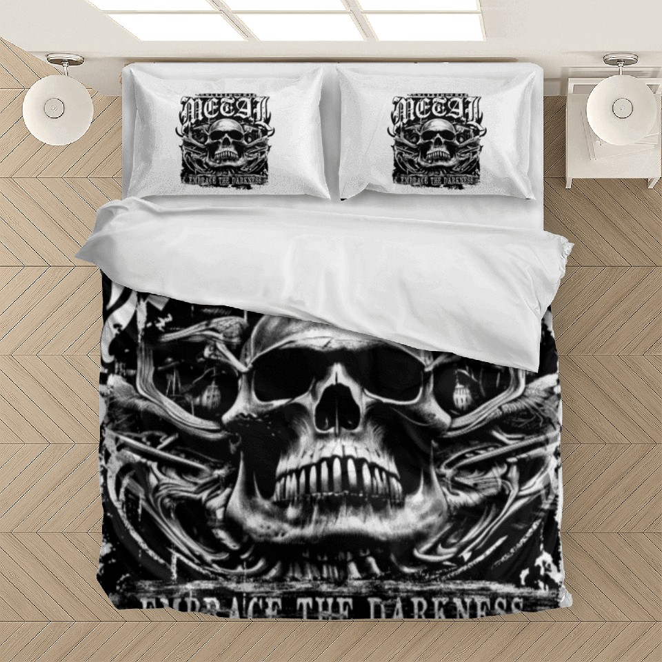 Shop for impressive Embrace the darkness, unleash the metal Bedding Sets or see more Bedding Sets products right now on Printblur to enjoy your happiness!