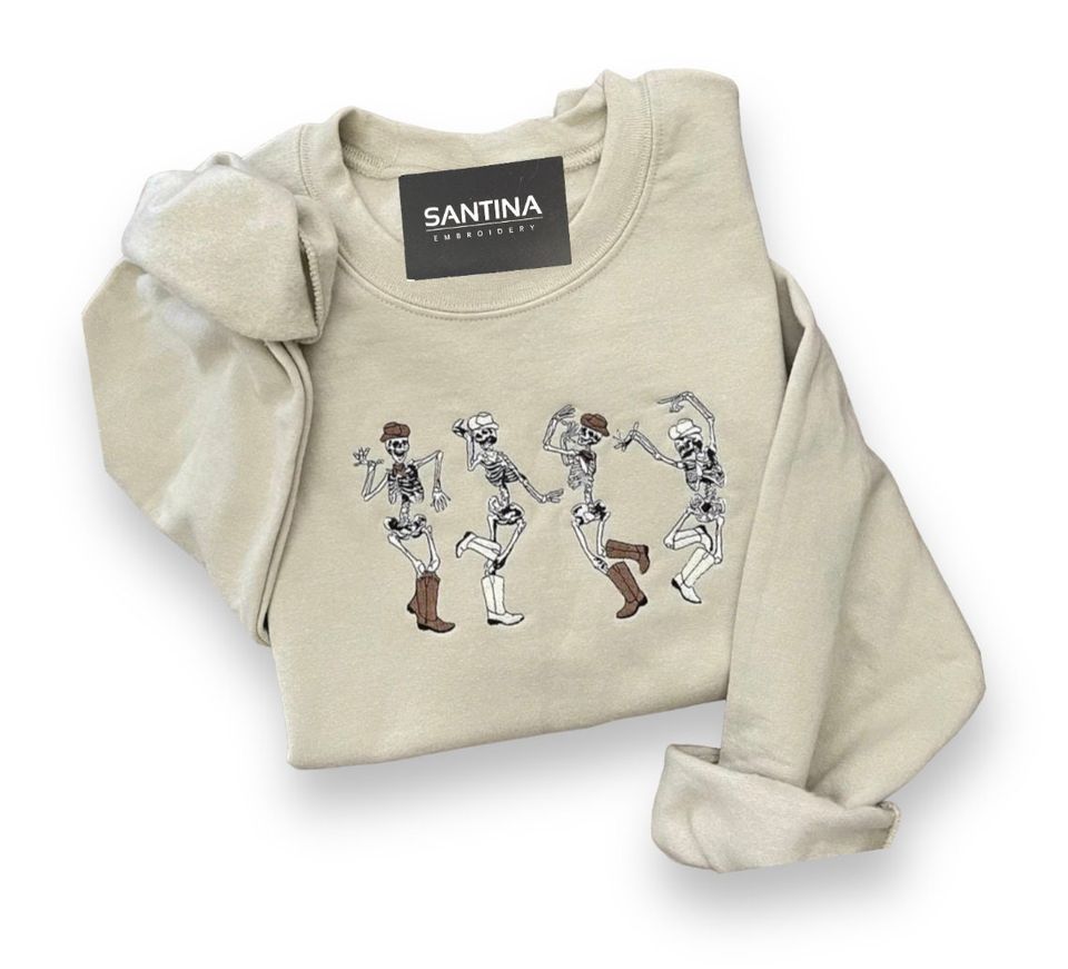 Own fascinating Embroidered Cowboy Skeletons Sweatshirt, Dancing Skeletons Sweatshirt Halloween Crewneck or see more Embroidered Sweatshirts products now from Printblur shop to enjoy your shopping time!