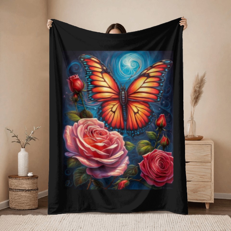 Shop for attractive Emerald Monarch: A Delicate Embrace of Nature Throw Blankets or see more Throw Blankets products on https://printblur.com right now!