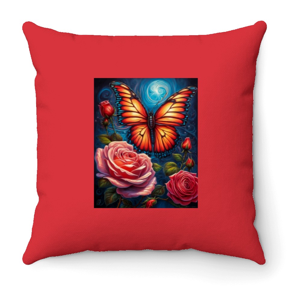 You're taking a peek at the product Emerald Monarch: A Delicate Embrace of Nature Throw Pillows For Cover Only Red belong theme Throw Pillows at Printblur