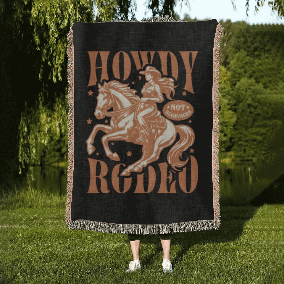 Buy eye-catching Empowered Cowgirl Riding Horse Woven Blankets or see more Woven Blankets products at Printblur shop now to explore many surprises from our shop!