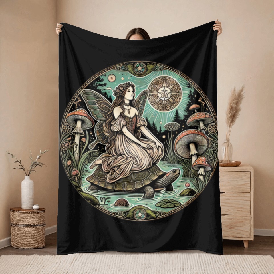 Shop for attractive Enchanted Forest Fairy on Turtle Throw Blankets or see more Throw Blankets products on https://printblur.com right now!