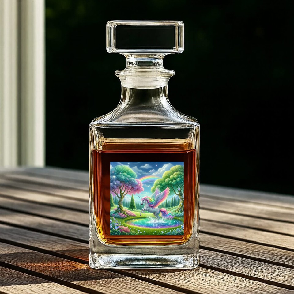 You are seeing a unique and impressive product Enchanted Rainbow Unicorn Over Sparkling Pond Whiskey Decanters For belong theme Whiskey Decanters at Printblur