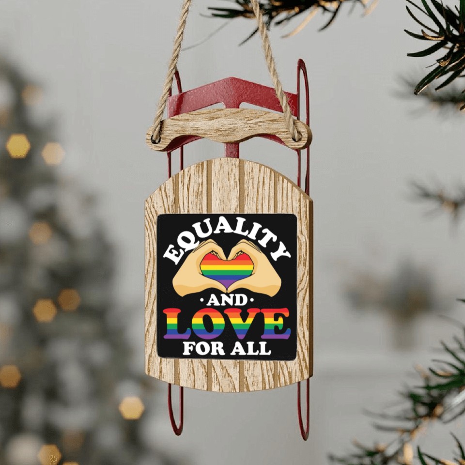 Equality and Love For All Heart Rainbow LGBTQ Sled Ornaments