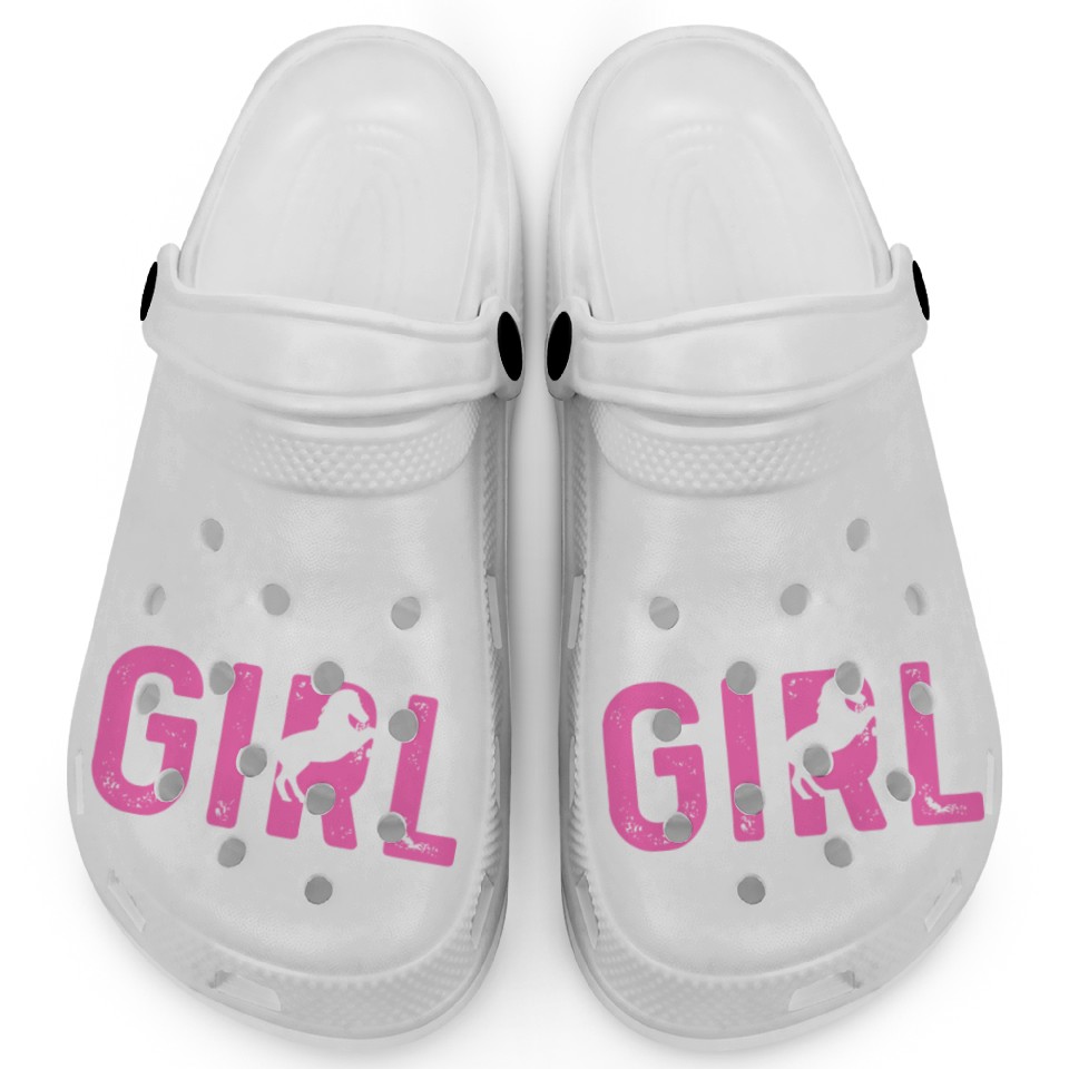 You are contemplating one of the best-selling products Equestrian Love Horse Racing Horse Farm Design Clogs For Kids WHITE belong theme Clogs at Printblur