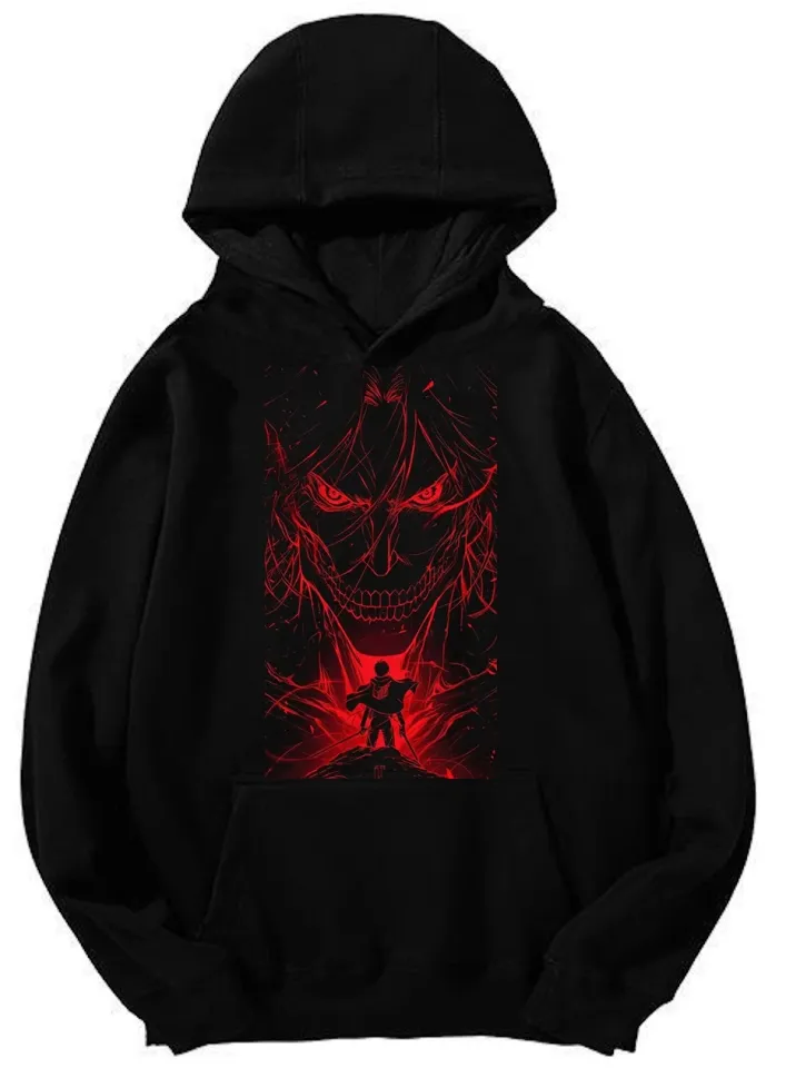 You're looking at the eye-catching product Eren Yeager AO Titan Hoodie - Founding Fiery Red Design Unisex Pullover For Youth Black belong theme Hoodies at Printblur