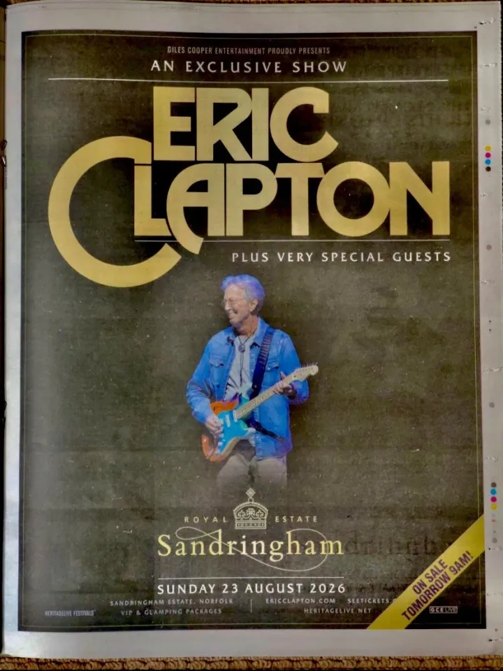 You're searching for a one-of-a-kind product Eric Clapton Live Tour 2026 Exclusive UK Newspaper Advert Poster For belong theme Premium Matte Vertical Posters at Printblur