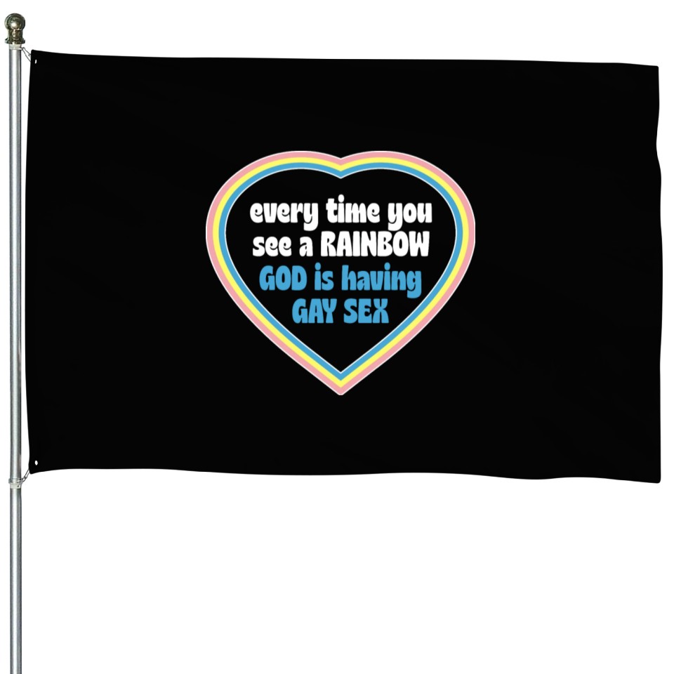 Shop for attractive Every Time You See A Rainbow God Is Having Gay sx House Flags or see more House Flags products on https://printblur.com right now!