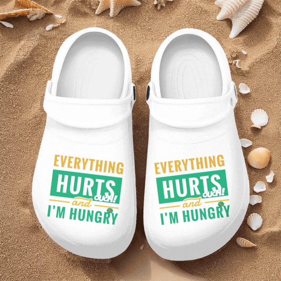 Everything Hurts And I Am Hungry Funny Gym Fitness Nurse Clogs