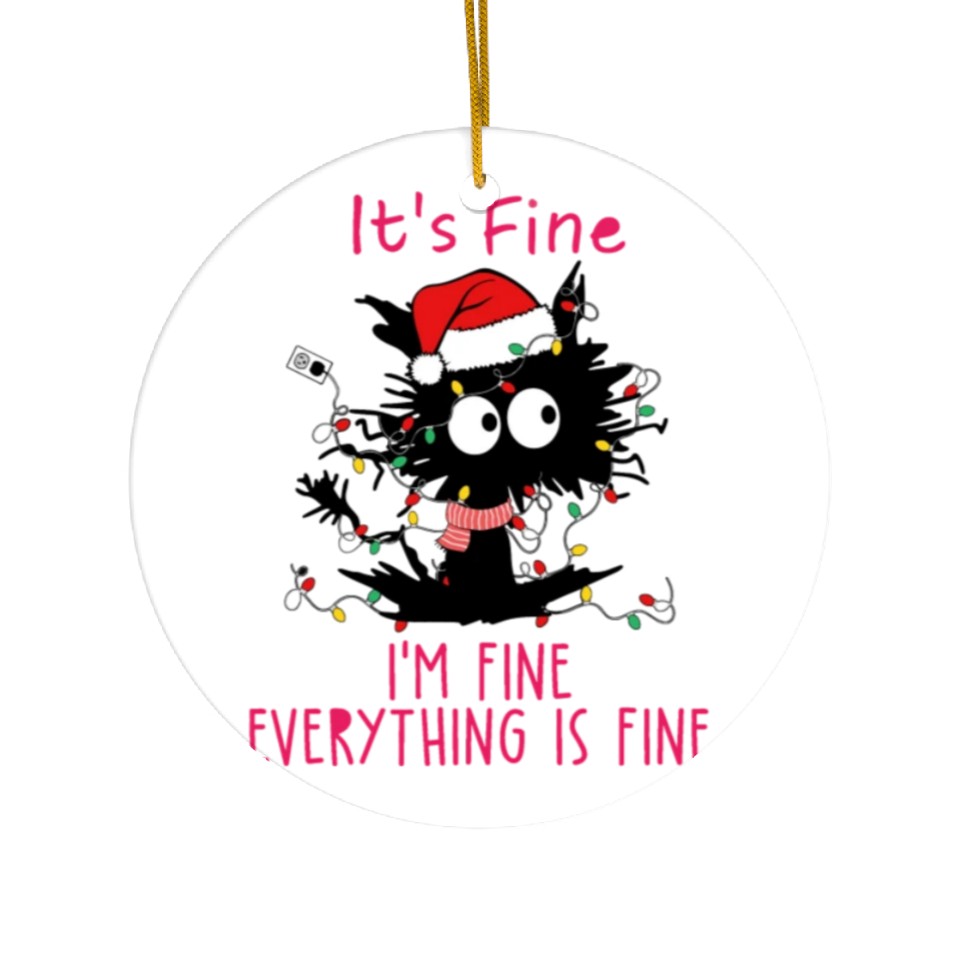 Own fascinating Everything's Fine Black Cat Tangled in XMAS Light Ceramic Ornaments or see more Ceramic Ornaments products now from Printblur shop to enjoy your shopping time!