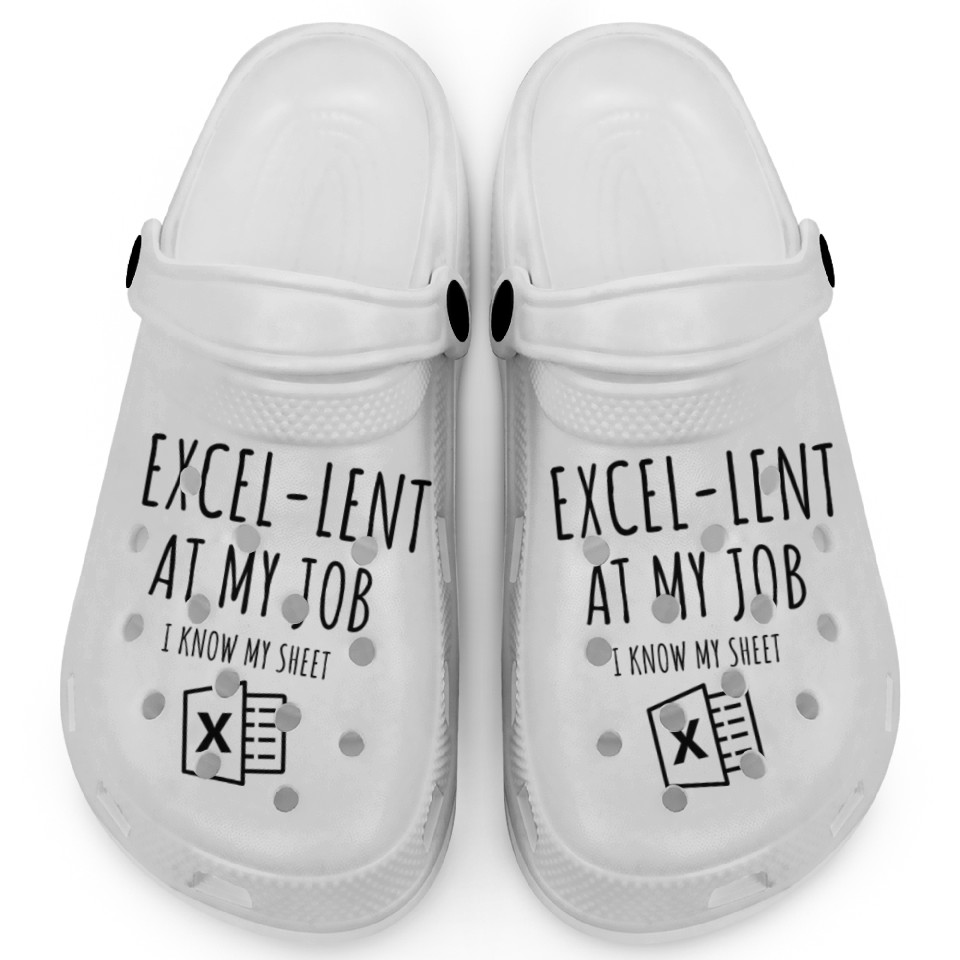You are viewing an exclusive and elegant product Excel-lent at My Job Funny Accountant Data Analyst Clogs For Kids WHITE belong theme Clogs at Printblur