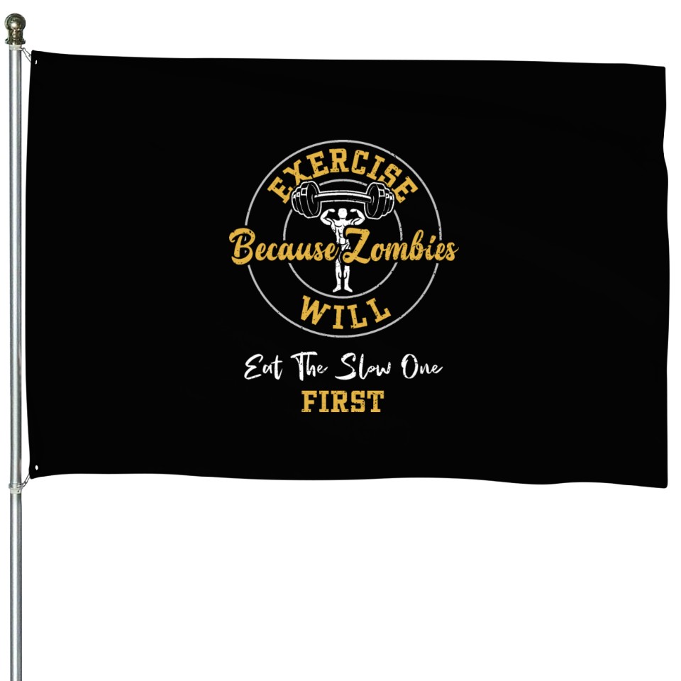 You are viewing an exclusive and elegant product Exercise Because Zombies Will Ea... House Flags For Black belong theme House Flags at Printblur