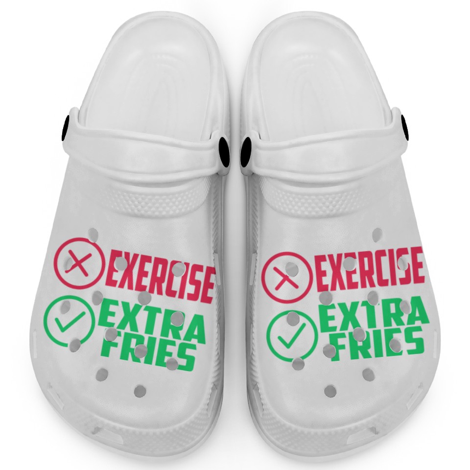 Shop for impressive Exercise Extra Fries Gym Workout Chips Clogs or see more Clogs products right now on Printblur to enjoy your happiness!