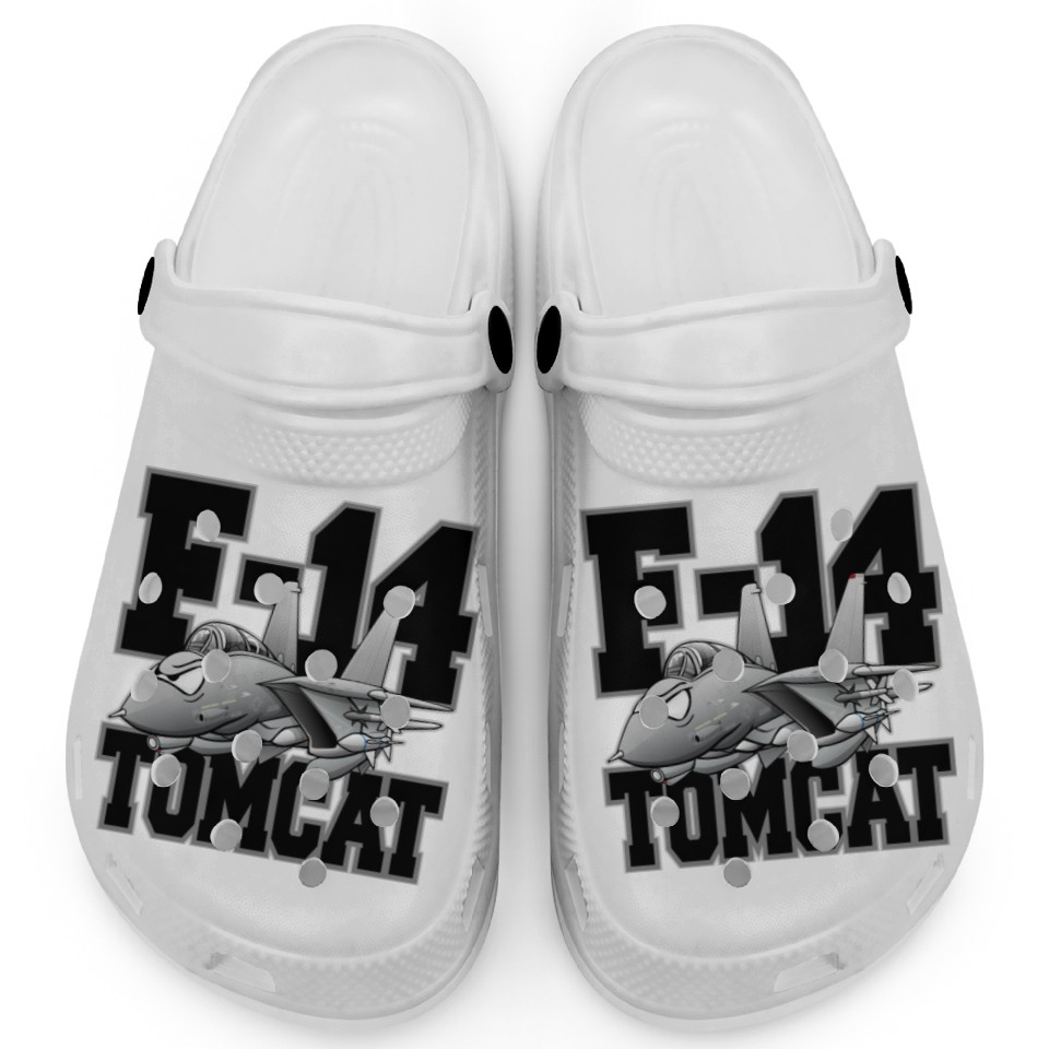 You are seeing a unique and impressive product F-14 Tomcat Military Fighter Jet Aircraft Cartoon Clogs For Kids WHITE belong theme Clogs at Printblur