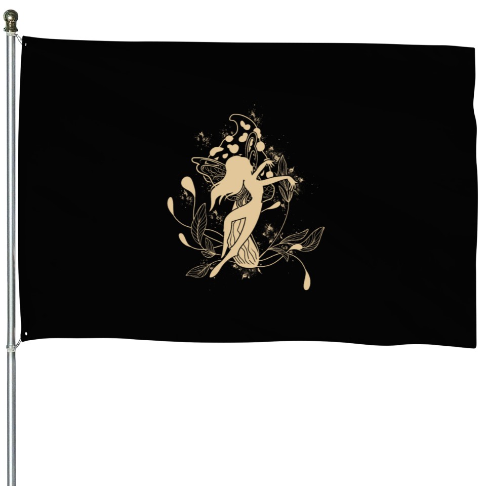 You are seeing a unique and impressive product Fairy House Flags, Fairycore Dancing Fairy Mushroom For Black belong theme House Flags at Printblur