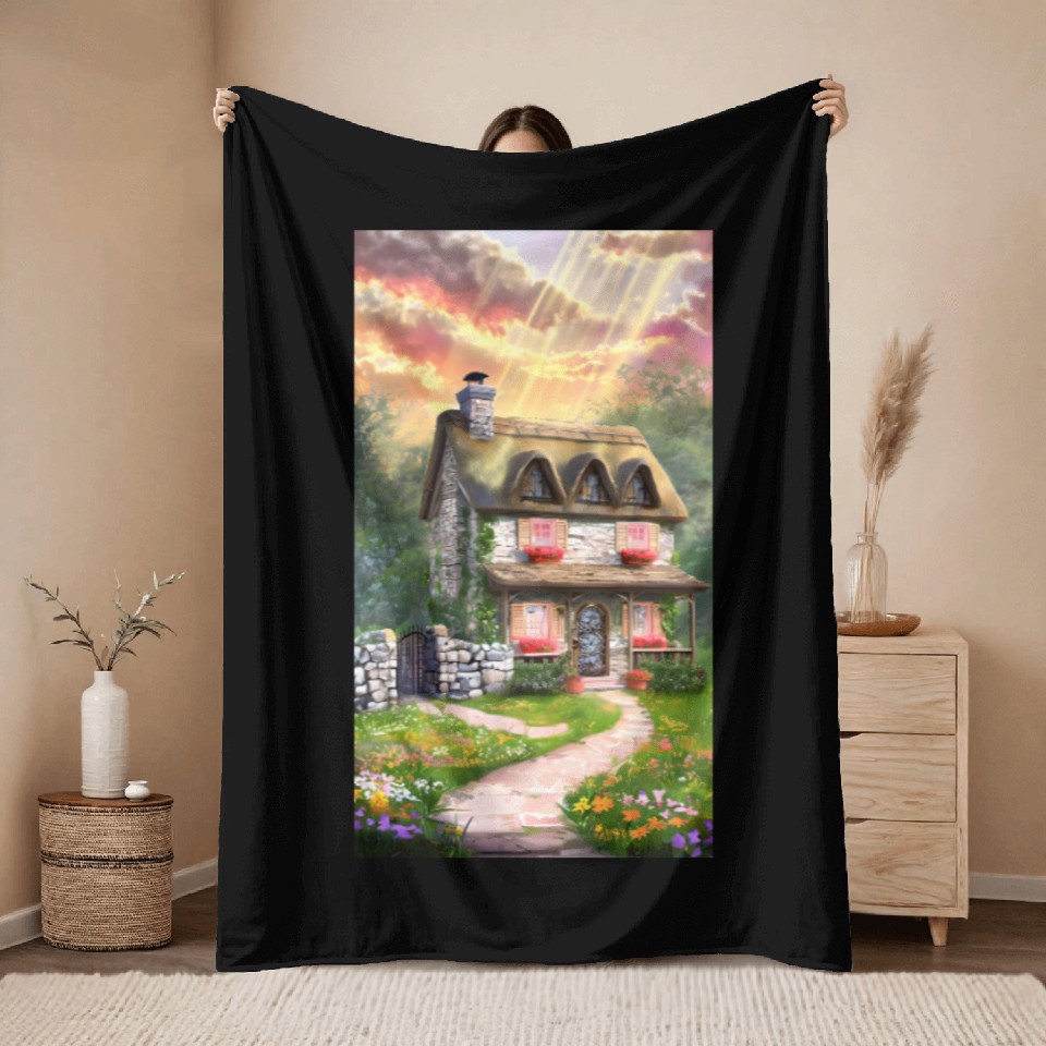 Shop for attractive Fairy Tale Cottage in Sunrise Light Throw Blankets or see more Throw Blankets products on https://printblur.com right now!