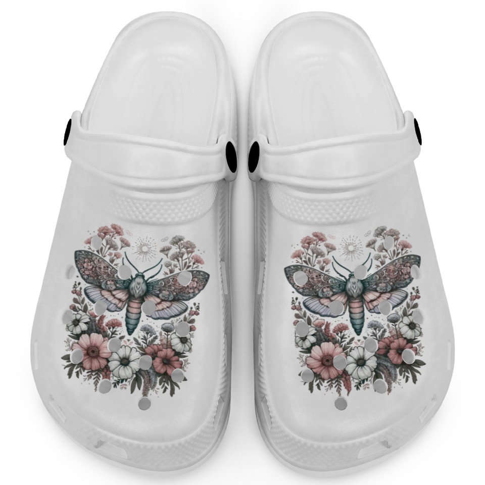 You're looking at the eye-catching product Fairycore Floral Moth Pastel Fairycore Aesthetic Clogs For Kids WHITE belong theme Clogs at Printblur