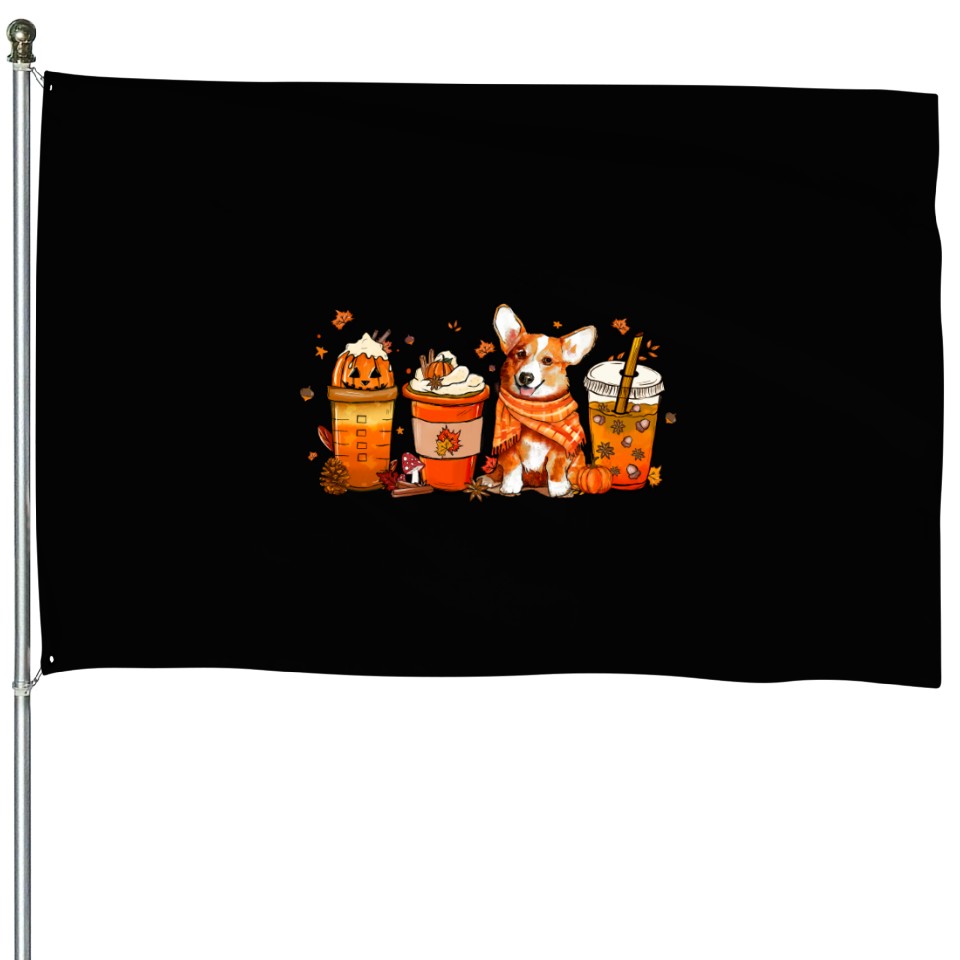 You're searching for a one-of-a-kind product Fall Coffee with Corgi Pumpkin Spice Latte Lovers House Flags For Black belong theme House Flags at Printblur