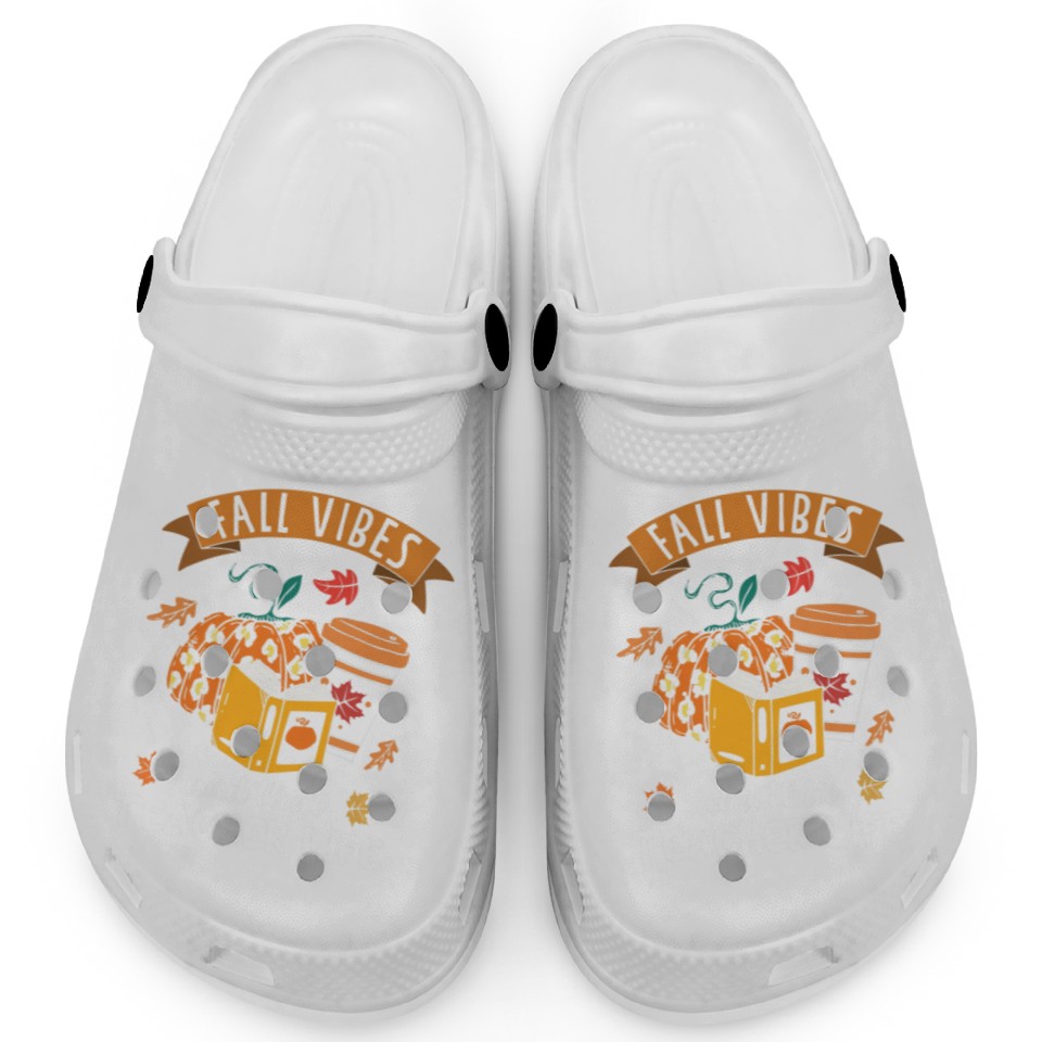 You are shopping for a stunning and trendy product Fall Vibes And That Teacher Life Thanksgiving Clogs For Kids WHITE belong theme Clogs at Printblur