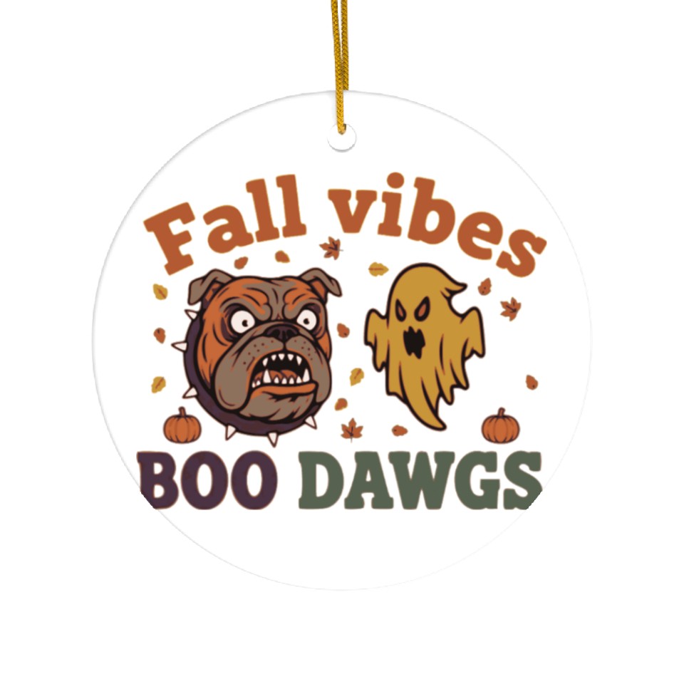 You are viewing an exclusive and elegant product Fall vibes | Halloween Bulldog Ghost Ceramic Ornaments For WHITE belong theme Ceramic Ornaments at Printblur