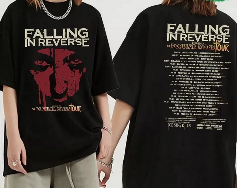 Buy stunning Falling In Reverse The Popular Mons Tour 2023 Double Sides T-shirt or see more Double Sided T-Shirts products at Printblur right now to receive many amazing discounts!
