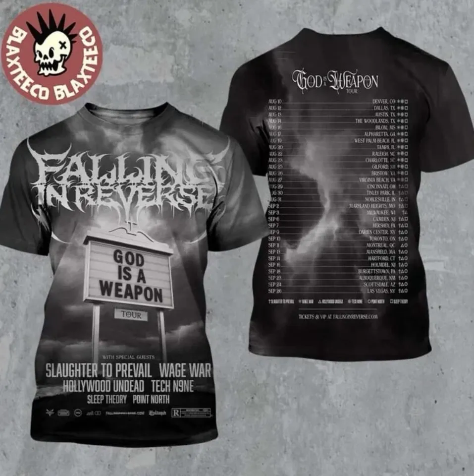 Own fascinating Falling In Reverse Tour 2025 US Canada Dates 3D T-Shirt or see more 3D T Shirts products now from Printblur shop to enjoy your shopping time!
