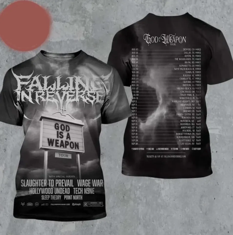 Own fascinating Falling In Reverse Tour 2025 US Canada Dates AOP 3D T-Shirt or see more 3D T Shirts products now from Printblur shop to enjoy your shopping time!