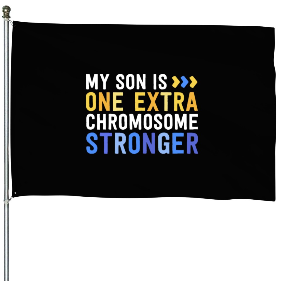 Shop for impressive Family Down Syndrome Awareness My Son One Extra House Flags or see more House Flags products right now on Printblur to enjoy your happiness!