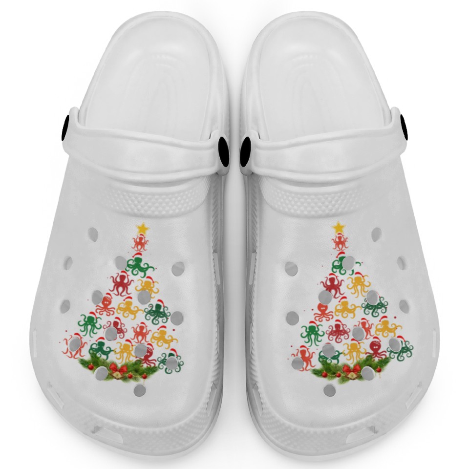 You are seeing a unique and impressive product Family Matching Christmas Pajama Octopus Xmas Tree Clogs For Kids WHITE belong theme Clogs at Printblur
