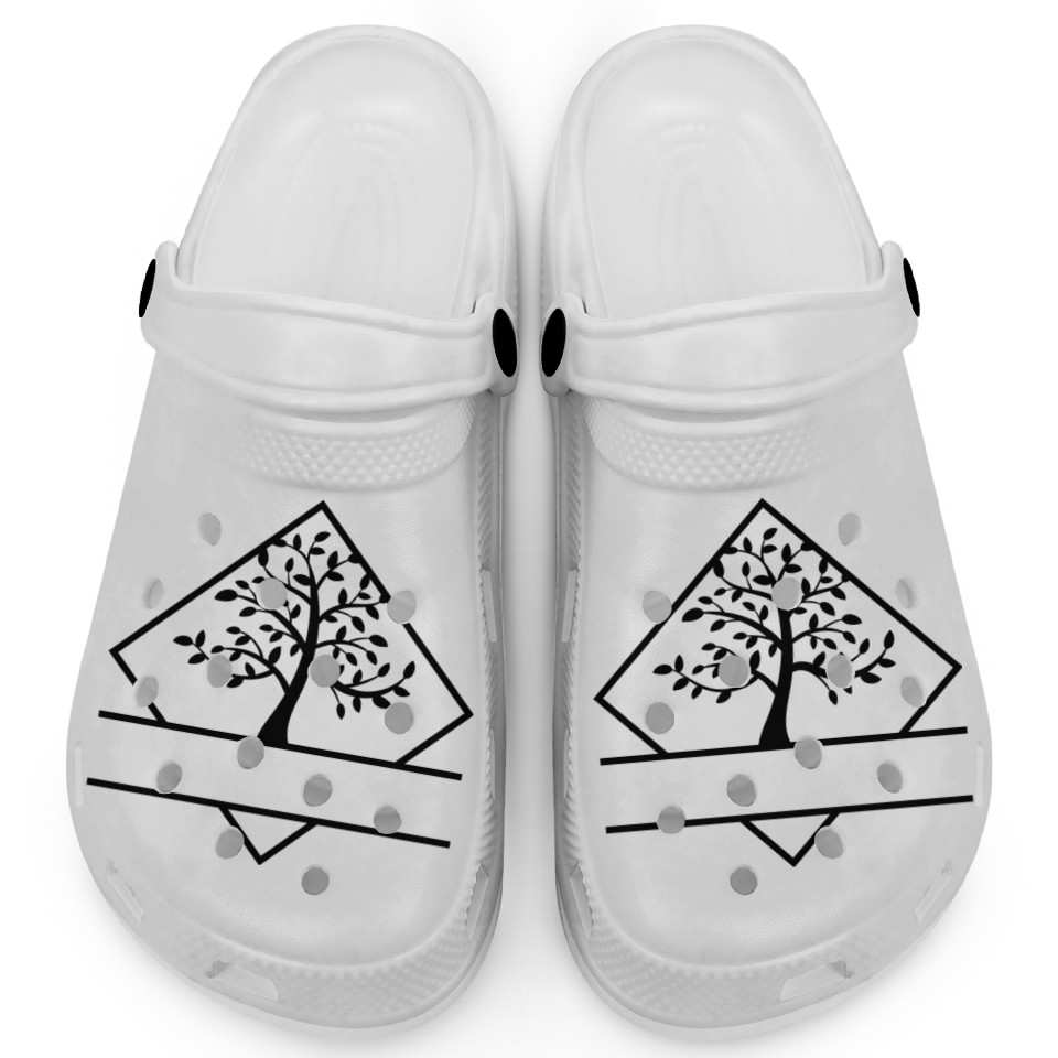 You're taking a peek at the product Family Reunion, Tree, Monogram Clogs For Kids WHITE belong theme Clogs at Printblur