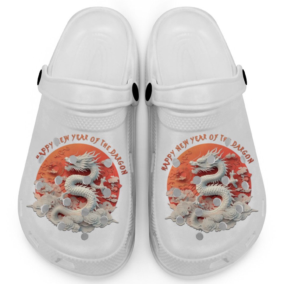 You are viewing an exclusive and elegant product Fantasy Dragon: Happy New Year of the Dragon! Clogs For Kids WHITE belong theme Clogs at Printblur