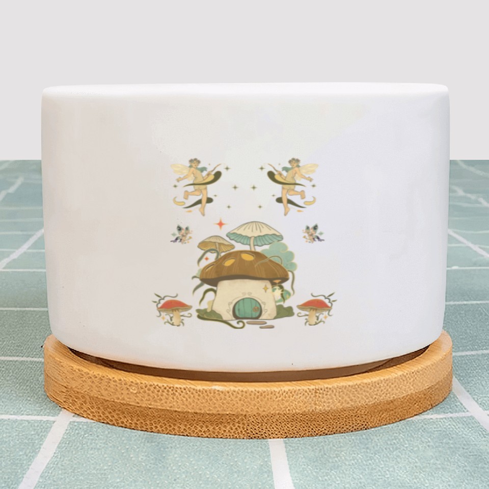 You are shopping for a stunning and trendy product Fantasy mushroom House Elves Design Plant Pots For WHITE belong theme Plant Pots at Printblur