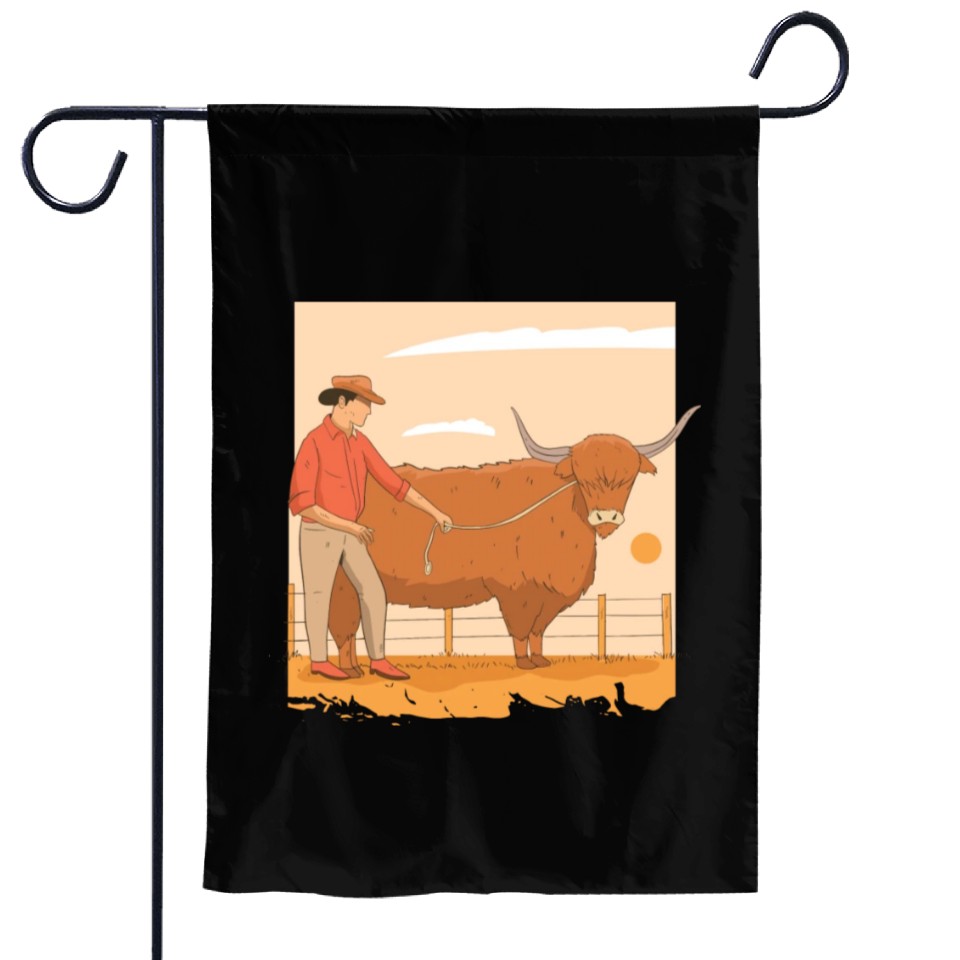 You are seeing a unique and impressive product Farmer With Highland Cow Garden Flags For Black belong theme Garden Flags at Printblur
