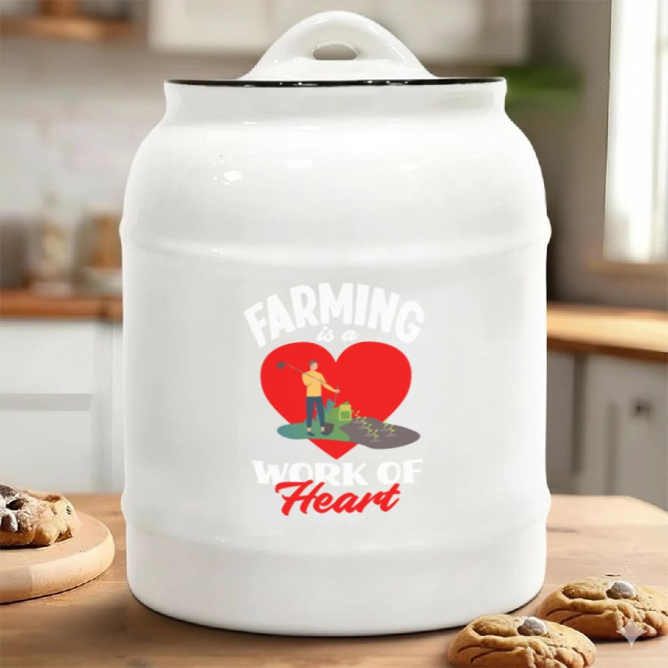 Buy eye-catching Farming Is A Work Of Heart Funny Farmer Gift Ceramic Cookie Jars or see more Ceramic Cookie Jars products at Printblur shop now to explore many surprises from our shop!