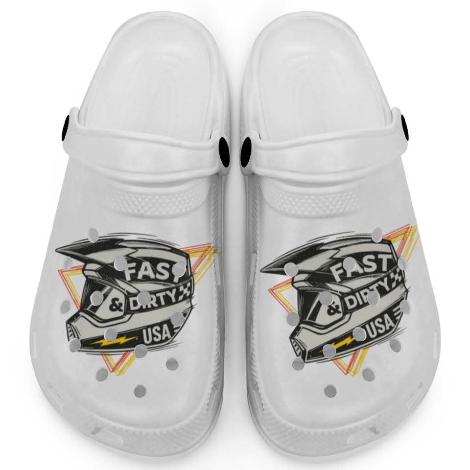 The product unique design you searched for is Fast & Dirty Bike Helmet Motocross Biker Clogs For Kids WHITE belong theme Clogs at Printblur